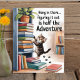 Cette conception de poster de chat adorable et inspirante comprend une image aquarelle d'un chaton essayant de grimper sur une étagère à livres. La phrase "Accroche-toi... Comprendre, c'est la moitié de l'aventure" est en haut de la conception du poster. Ce design est parfait pour quiconque aime les chats, mais il a également un thème de amateur de livres confortable.