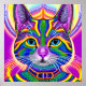Robot cool steampunk chat kitty aux yeux bleus mystiques et fourrure colorée stickers d'art générés par l'IA psychédéliques.