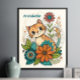 Affiche Chat Mignon avec Fleurs