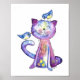 Il s'agit d'une peinture originale sur médias mixtes d'un chat blanc, heureux, violet avec deux oiseaux.