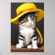 Affiche Chat mignon et adorable en casquette jaune | Art A