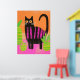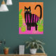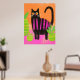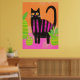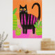 Affiche Chat Noir avec des rayures roses et des plantes mé