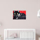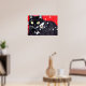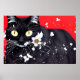 Affiche Chat noir avec Fleurs blanches Arrière - plan roug