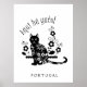 Quand les Portugais disent Aqui há gato ! ils ne disent pas qu'il y a un chat autour. Il s'agit d'une expression portugaise utilisée lorsqu'une situation particulière suscite des soupçons. C'est comme dire que quelque chose est louche. Si vous pensez que quelque chose est suspect ou si vous sentez quelque chose qui n'est pas totalement correct, vous dites Aqui há gato ! Cette illustration d'un chat et de fleurs folkloriques en noir et blanc a un grand contraste et est assez drôle parce qu'elle joue avec le sens de cette expression. Il aura l'air drôle dans une maison où il y a, en fait, un chat, il est noir, blanc ou tabby. Je dirais que cette illustration plaira particulièrement aux amoureux de les chats. Il fera un bon cadeau d'anniversaire pour un propriétaire de chat ou pour quelqu'un qui vient d'adopter un chat. C'est un bon début de conversation pour la plupart des gens qui ne sont pas d'origine portugaise, en général, la plupart des gens le trouvent drôle. Un petit humour félin est toujours une bonne idée dans notre vie quotidienne, presque aussi bon que l'apprentissage d'une langue seconde !