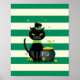 Affiche Chat noir en cravate arc et casquette avec shamroc
