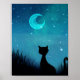 Affiche Chat noir étincelle ciel étoilé illustration moder