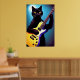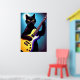 Un chat noir mignon et adorable jouant de la guitare. C'est un art généré par l'IA.