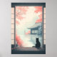 Affiche Chat noir regarder japonais Automne Zen Scène Art