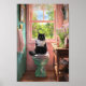 Chat noir sur une salle de bain Siège Papiers de lecture Poster