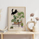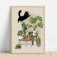 Un design ludique et intentionnel capturant le beau chaos que seul un propriétaire de chat noir comprend vraiment. Cette illustration présente un "panthère domestique" élégant au milieu d'une crise de folie, planant au-dessus d'une jungle intérieure soigneusement organisée de Monstera, de figuiers à feuilles de violon et de plantes serpents.