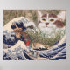 Collages uniques de célèbres ukiyoe, ou estampes de bois japonais, la Grande vague au large de Kanagawa par Katsushika Hokusai (1760-1849) et Chat surnaturel par Kawanabe Kyosai (1831-1889).
