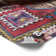 "Aujourd'hui je suis en méditation transcendantale mais je lutte contre l'odeur de saucisse..." Tilki est assise sur un vieux tapis turc. Photo et design graphique numérique par Bulgan Lumini (c)