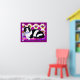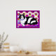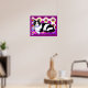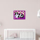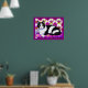 Poster dans une illustration d'un chat tuxedo noir et blanc sur un coussin, avec un arrière - plan exotique à motifs dans les tons magenta et violet
