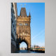 Vieille tour à une extrémité du pont Charles tôt le matin - Prague, République tchèque. Vue sur le pont, le château et l'église Saint-Nicolas.