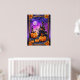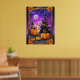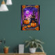 Apportez la magie d'Halloween dans votre maison avec ce poster enchanteur. Doté de trois lanternes "jack-o" expressives au premier plan et d’une silhouette de château hantée et capricieuse face à un ciel crépusculaire vibrant, cet oeuvre capture l’essence éffrayante mais charmante de la saison. Les chauves-souris flottent autour d'une pleine lune, tandis que les feuilles d'automne encadrent la scène, ajoutant une touche de chaleur saisonnière. Parfait pour la décoration d'Halloween, cette affiche ravira petits et grands.