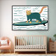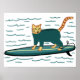 Affiche Chaton Tabby Fun Surfant Nurserie Enfants Plage