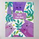 Illustration violette et verte avec chats et feuillage. Bonne fête des pères pour les papas de chat. Bonne fête des pères de chat ! Meilleure affiche de papa de chat.