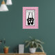 Une affiche avec l'illustration noire d'une danseuse de ballet pantoufles et ses pattes inférieures qui sont transparentes permettant à la couleur de l'arrière - plan de se montrer. Ballerina se tient sur ses orteils, en pointe. Texte : Ballet Girl. Le texte peut être personnalisé à un nom ou un autre texte de votre choix si vous le souhaitez. Arrière - plan est un motif en pois blanc sur rose.