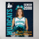 Affiche de sport personnalisée pour un athlète senior, un chef de claque et un joueur de sport. Ce modèle de conception personnalisable est parfait pour un événement sportif de rentrée scolaire, une soirée senior, un banquet de remise de prix sportifs ou une décoration de fête de fin d'études pour votre fils, fille ou étudiant athlète. C'est un excellent moyen d'afficher le portrait du joueur et les souvenirs de leurs matchs. Le design présente un fond abstrait et peut être personnalisé avec des noms, le numéro de maillot du joueur, les équipes scolaires ou tout texte personnalisé. Cela fait un cadeau unique et significatif ainsi qu'une décoration pour votre joueur.
