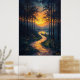 Immergez-vous dans la tranquillité de la nature avec cette impressionnante impression d'art impressionniste. Doté d'un sentier forestier sinueux illuminé par les teintes dorées du coucher du soleil et les reflets sur l'eau. Parfait pour ajouter chaleur et sérénité à votre décor mural.