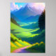 Faites un voyage à travers la sérénité de la nature avec notre affiche art numérique captivante. Ce magnifique chef-d'oeuvre comprend un chemin de terre qui descend une colline dans une belle vallée verte, avec des arbres et des collines au loin, et des montagnes imposantes qui atteignent le ciel dans l'arrière - plan lointain. Commandez maintenant et laissez cette affiche époustouflante vous transporter dans un monde d'émerveillement naturel.