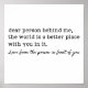 Citation inspirante et motivante disant : chère personne derrière moi, le monde est un meilleur endroit avec vous dedans.
