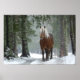 Affiche Cheval Brown dans une forêt d'hiver avec chute de