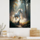 Un cheval blanc courant à travers la forêt