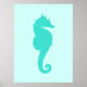 L'art de la silhouette d'un cheval de mer turquoise d'eau vive.