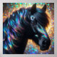 Affiche Cheval noir à crinière iridescente