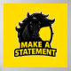 Illustration d'une tête de cheval noir foncé au-dessus du texte en gras 'Make A Statement' sur un arrière - plan jaune vif, représentant la détermination, la force et la motivation.