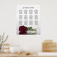 Affiche Chic Burgundy Rose 12 Table Wedding Seating Chart
