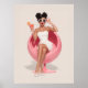 A stylish woman in a white dress and bold white sunglasses sits confidently in a pink retro chair, holding a vibrant cocktail. Her playful expression and modern pin-up flair bring a mix of glamour, confidence, and fun. Perfect for fashion lovers, retro art fans, and anyone who adores a pop of pink and vintage chic style.