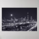 Night time photograph of Chicago, Illinois. Image from the west side of Chicago. This image is black & white with a slight blue tone by design.