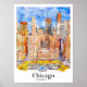 Affiche Chicago Illinois Voyage Aquarelle main tirée