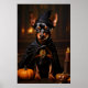 Affiche Chien de pin miniature dans une fête d'Halloween