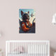 Décollez avec ce Bulldog français énergique, adapté à un uniforme de vol de l'Air Force découpé en rouge. Son casque reflète un ciel bleu vif, et son timbre porte fièrement le titre "WOOF-ONE". Perché en toute confiance dans son cockpit, il est à quelques instants du décollage tandis qu’un autre jet derrière lui feuille un nuage de fumée caricaturale. Avec la langue et les yeux larges, ce chiot est prêt à l'action. Idéal pour les chambres sur le thème militaire, les amateurs d'avion ou les amateurs de petits chiens courageux.