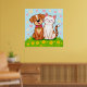 Affiche Chien et chat de dessin animé mignons assis ensemb