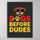 Audacieux et humoristique, le design Chiens avant les mecs est parfait pour les amoureux des chiens qui savent où se trouve leur loyauté. Avec un chien de dessin animé cool portant des lunettes de soleil et des accents d'empreintes de pattes, ce design est ludique et accrocheur.