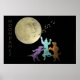 3 chiens dansent avec désinvolture sous un siffleur dans la lune.