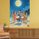 This painting by Kagu depicts a joyful scene of several young, Asian children gathered on a beach at night. They are dressed in traditional Japanese-style kimonos with floral patterns, varying in colors like pink, blue, green, and orange. The central figure, a boy in a blue kimono, is actively playing a large drum, and several other children around him also hold and appear to be playing smaller drums.