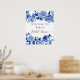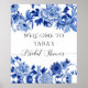 "Enseigne de Raptail Nuptial en style de Chinoiserie Bleu et Blanc. Conception de style Chinoiserie chinoise en bleu marine, bleu et blanc avec des interprétations stylisées de fleurs en bouton, feuillage, branches d'arbre et un oiseau chanteur qui encadre le texte pour accueillir vos invités pour la Raptail Nuptial de la future mariée très spéciale. L'œuvre d'art a été peinte par Audrey Jeanne Roberts, une artiste et designer licenciée internationalement, copyright.