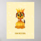 Dessin animé de chiot royal mignon avec des orbes lumineuses sur fond safran clair. Le texte peut être personnalisé.