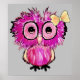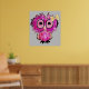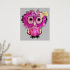 Affiche Chouette rose mignonne avec arc ruban