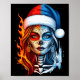 Affiche Christmas Sugar Skull Art Woman Santa Hat Fantasy
