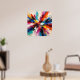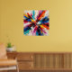 Abstract artwork of a colorful burst. This piece features a central explosion of color that radiates outward in dynamic splatters and energetic streaks. The composition is a chaotic yet balanced dance of vivid cyans, electric magentas, fiery oranges, and deep blacks against a clean background. The artwork radiates from the center with high-contrast colors including teal, red, yellow, and purple mixed with dynamic black ink lines. The layered textures and energetic splatters create depth and rhythm. This is the ultimate "statement piece." It works best in minimalist or industrial spaces where the furniture is neutral (white, grey, or black leather), allowing the art to provide the sole, powerful pop of color. Ideal for a creative home office, a modern living room, or a teen's bedroom.