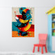 Swirling geometric energy meets Bauhaus clarity in this red, cyan, and golden composition. Spirals and intersecting lines create a sense of cosmic movement and mid-century elegance. Perfect for bright modern interiors, studios, or galleries seeking bold color and precise rhythm.