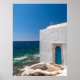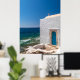 This coastal church poster captures a peaceful meeting of sea, sky, and faith in one beautiful scene. Perfect for coastal home décor, religious wall art, and travel lovers, it brings a calm Mediterranean feeling and timeless charm to your living space.