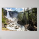 Cette photo montre la fin de l'hiver à Nevada Falls est en plein flux et l'eau se déverse de la falaise et reprend dans la rivière Merced quand il passe des rochers et des sapins.