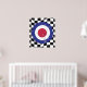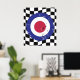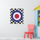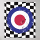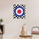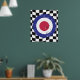 Cible rouge rouge et bleu mod rétro sur arrière - plan chèque noir et blanc